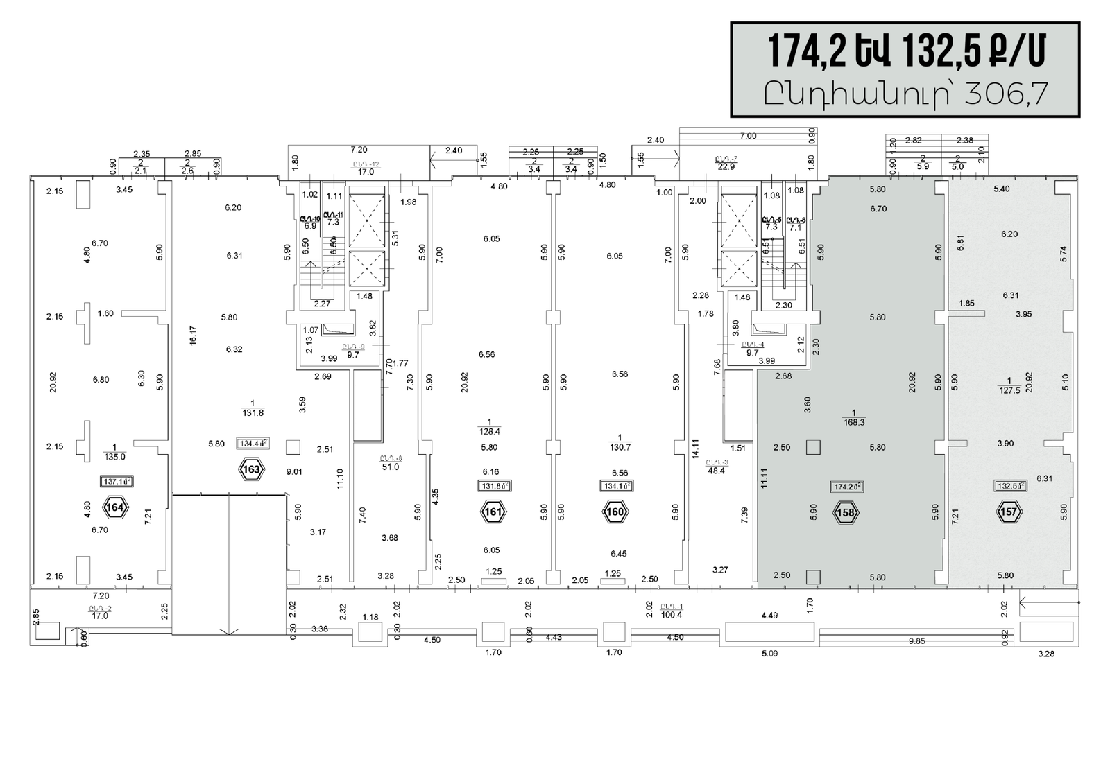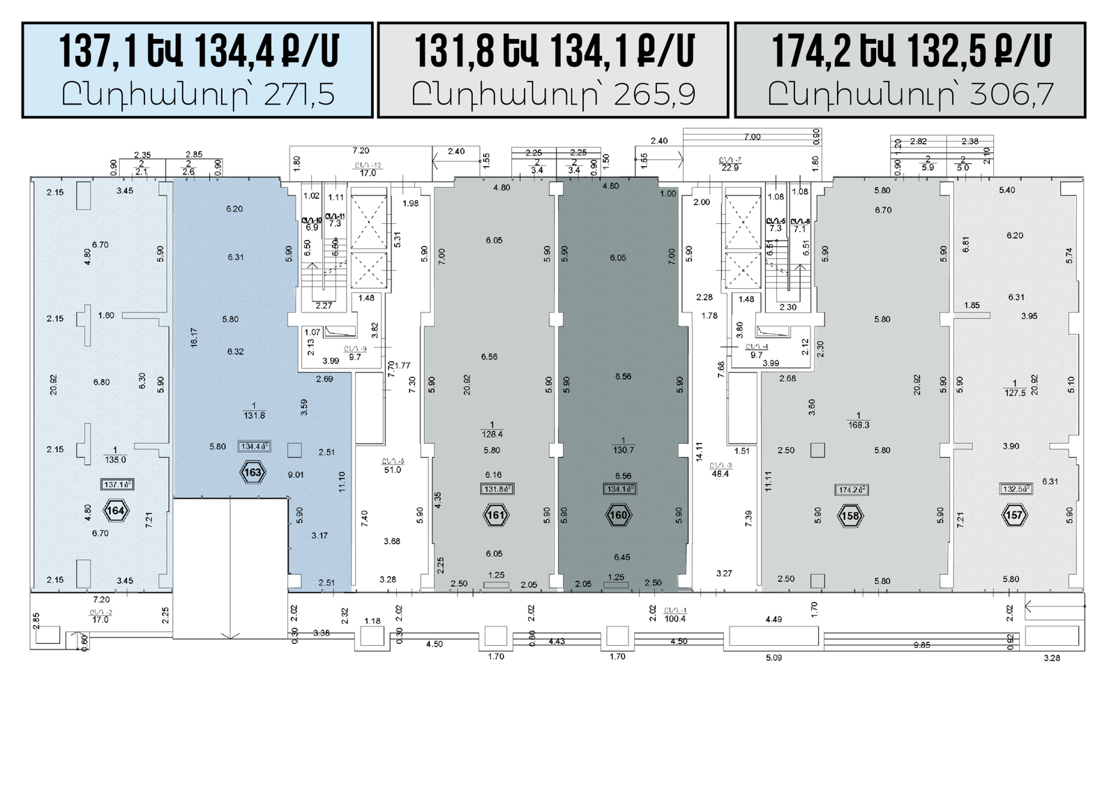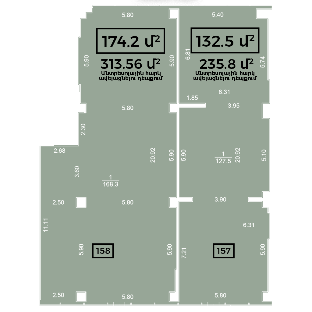 1․ Միավորելու (306,7 ք/մ) և անտրեսոլային հարկ ավելացնելու հնարավորություն (549.36 ք/մ)