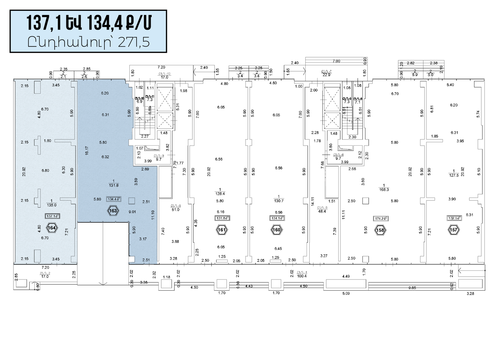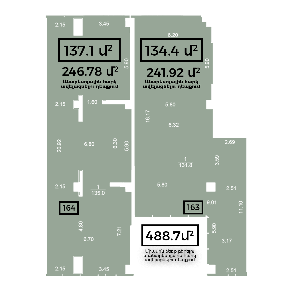 3․ Միավորելու (271.5 ք/մ) և անտրեսոլային հարկ ավելացնելու հնարավորություն (488.7 ք/մ)