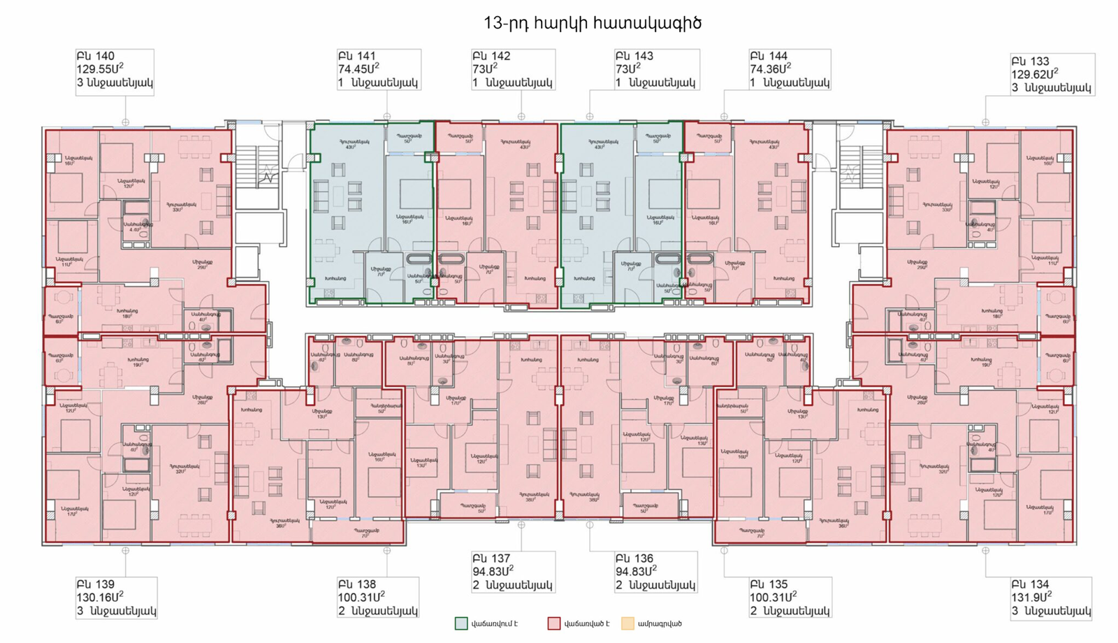 • 11–14-րդ հարկերում վաճառվում են լիովին վերանորոգված և կահավորված բնակարաններ՝ նախատեսված ներդրումներ կատարելու համար։